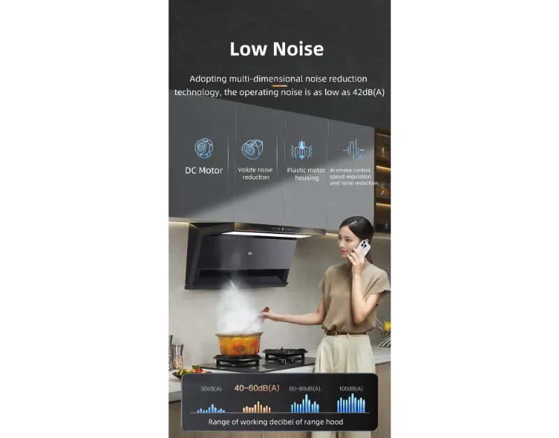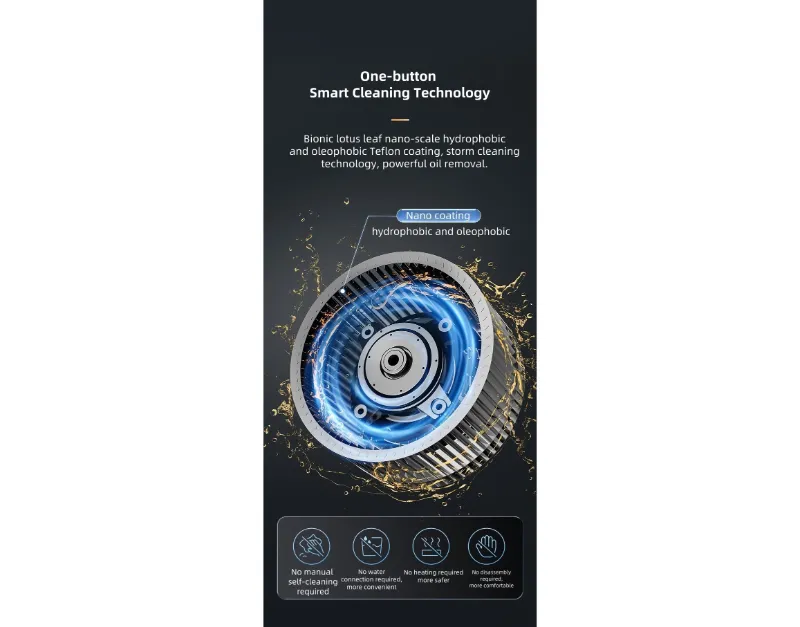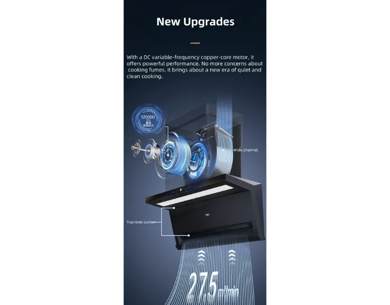 Com um motor de núcleo de cobre de frequência variável CC, ele oferece desempenho poderoso. Não há mais preocupações com a fumaça de cozinhar. Ele traz uma nova era de cozinha silenciosa e limpa.