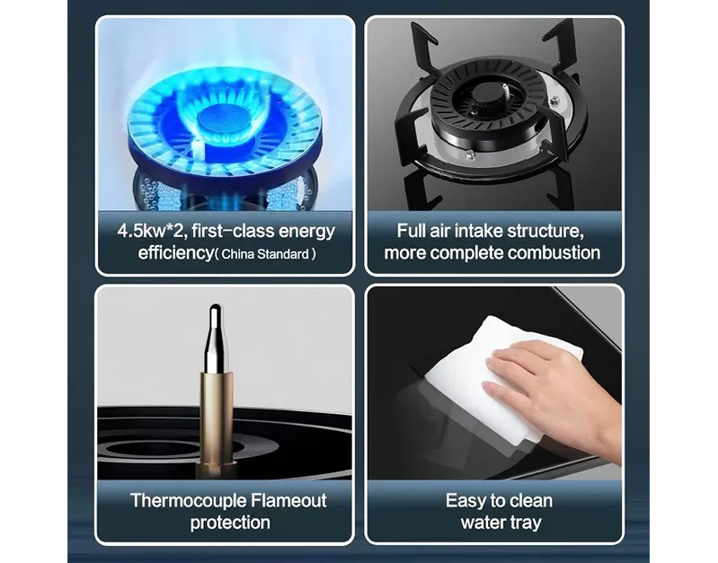 Este fogão a gás oferece uma mistura de estabilidade e segurança para cozinhar eficientes. Sua bandeja de água circular e o design de suporte da panela garantem a colocação segura de panelas enquanto contenha derramamentos, emparelhada com um suporte durável da panela de aço de esmalte para resistência de alta temperatura. Equipado com proteção de flameutas de termopar, ele corta automaticamente o suprimento de gás se a chama for fortalecida, aumentando a segurança. Com uma carga de calor de 4,2kW, ele fornece calor forte e consistente para o cozimento versátil. A estrutura do queimador não detestável acrescenta durabilidade, tornando este fogão uma opção confiável e de baixa manutenção para uso diário de cozinha.