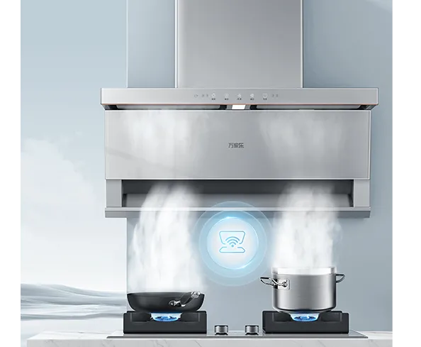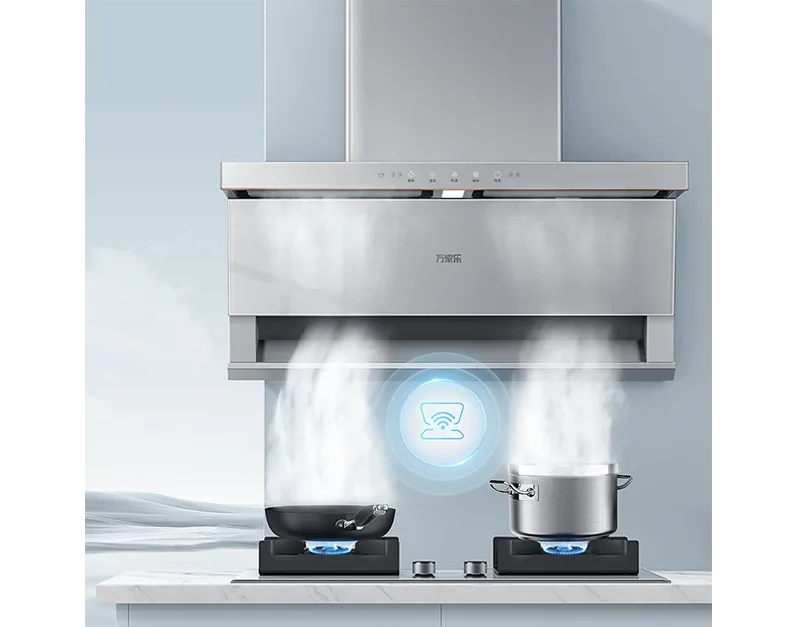 Fornecido com um capô de alcance com função de ligação do fogão de fumaça, quando usado de forma síncrona, o alcance capuz inicia automaticamente a fumaça quando o fogo é iniciado.
