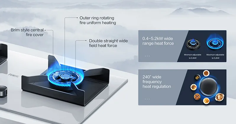 A tecnologia uniforme de travamento da chama pode não apenas melhorar a taxa de utilização de gás, mas também garantir a combustão completa do oxigênio, liberando 5,2kW de fogo de grande poder de fogo.