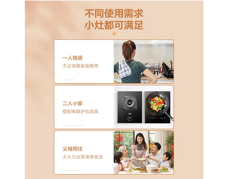 Este fogão a gás de queimador único oferece eficiência em um design de economia de espaço, ideal para pequenas cozinhas ou necessidades de culinária suplementar. A tampa do queimador de latão garante uma distribuição durável e uniforme de calor, enquanto o suporte da panela de aço de esmalte fornece o posicionamento de panelas estáveis e resistentes à temperatura. A segurança é priorizada com a proteção da flameout de termopar, cortando automaticamente o suprimento de gás se a chama for fortalecida.