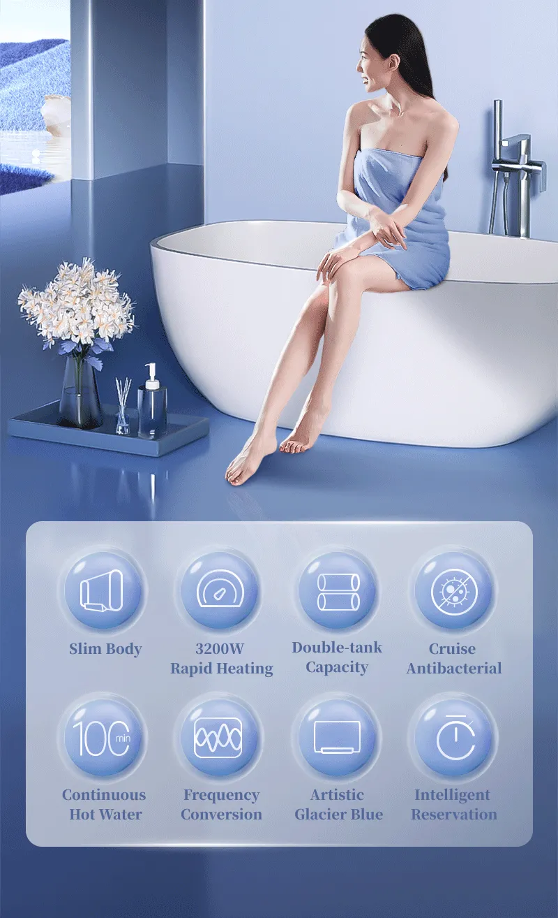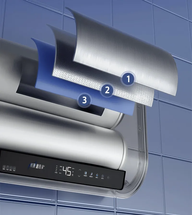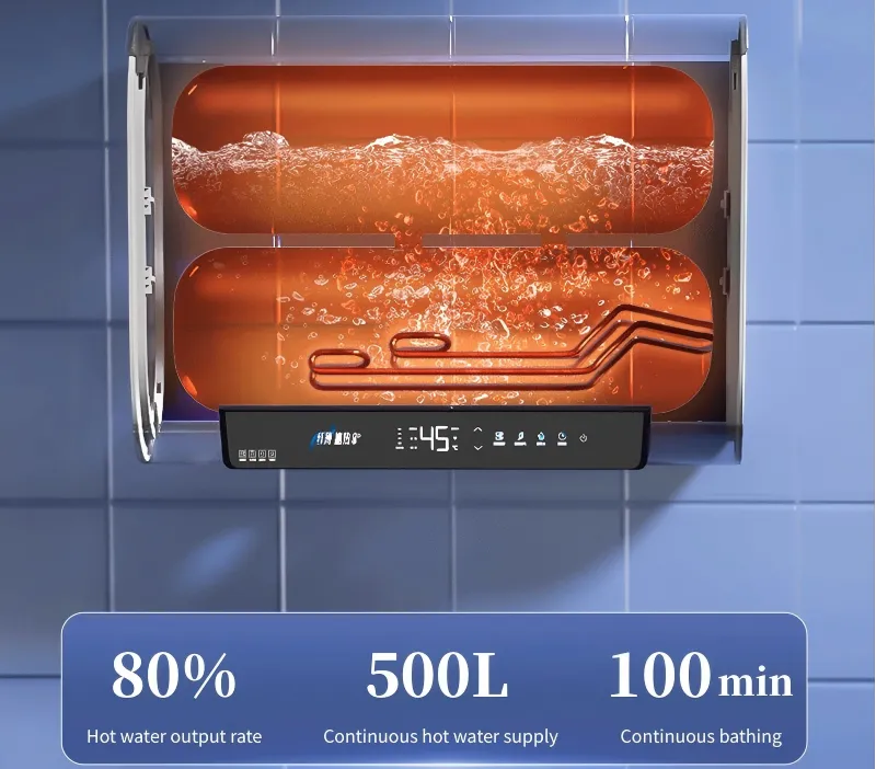 Na sua essência, os tubos de aquecimento duplos de 3200W funcionam em conjunto com a tecnologia de tanque duplo, permitindo o aquecimento rápido e a expansão de 8x da capacidade-definindo chuveiros longos e ininterruptos, mesmo durante o uso de pico. O sistema inteligente 变频 (conversão de frequência) otimiza o consumo de energia, alcançando a eficiência energética de grau 2 e reduzindo a perda de energia em espera.