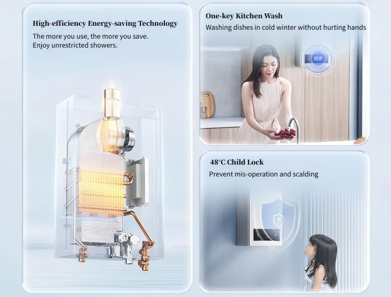 Alguns de nossos modelos são projetados especificamente para funcionar em ambientes de baixa pressão de água. Eles têm um recurso de inicialização de baixa pressão de água, que lhes permite ativar e operar normalmente, mesmo quando a pressão da água é relativamente baixa. Isso garante que você ainda possa desfrutar de água quente em áreas com pressão limitada da água.