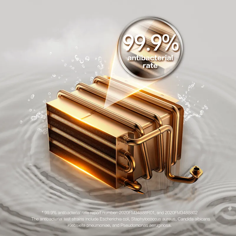 Trocador de calor eficiente, resistência à corrosão e atividade antibacteriana