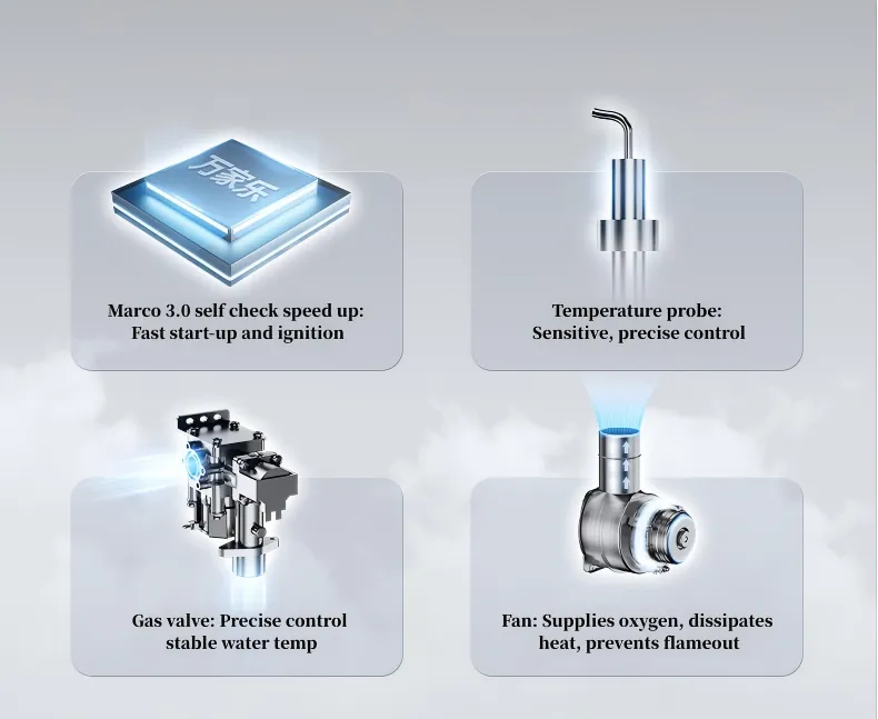 Nossos aquecedores de água a gás estão equipados com vários recursos de segurança. A maioria dos modelos possui um sistema de proteção máxima “7 + 2”, que inclui medidas como proteção de temperatura acima, proteção contra a queima anti-seque e proteção de chamas. Além disso, recursos como sistemas de aviso de erro e dispositivos de liberação de pressão de água aumentam ainda mais a segurança. Manutenção e inspeção regulares conforme o manual do usuário também são recomendadas.
