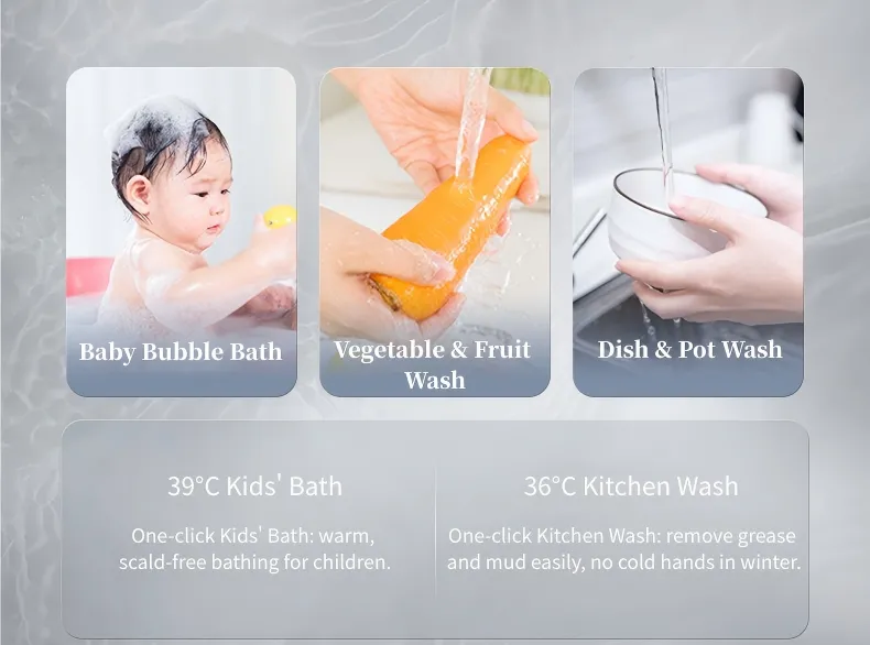 Lavagem de cozinha e banho de crianças com temperatura confortável personalizada de um clique