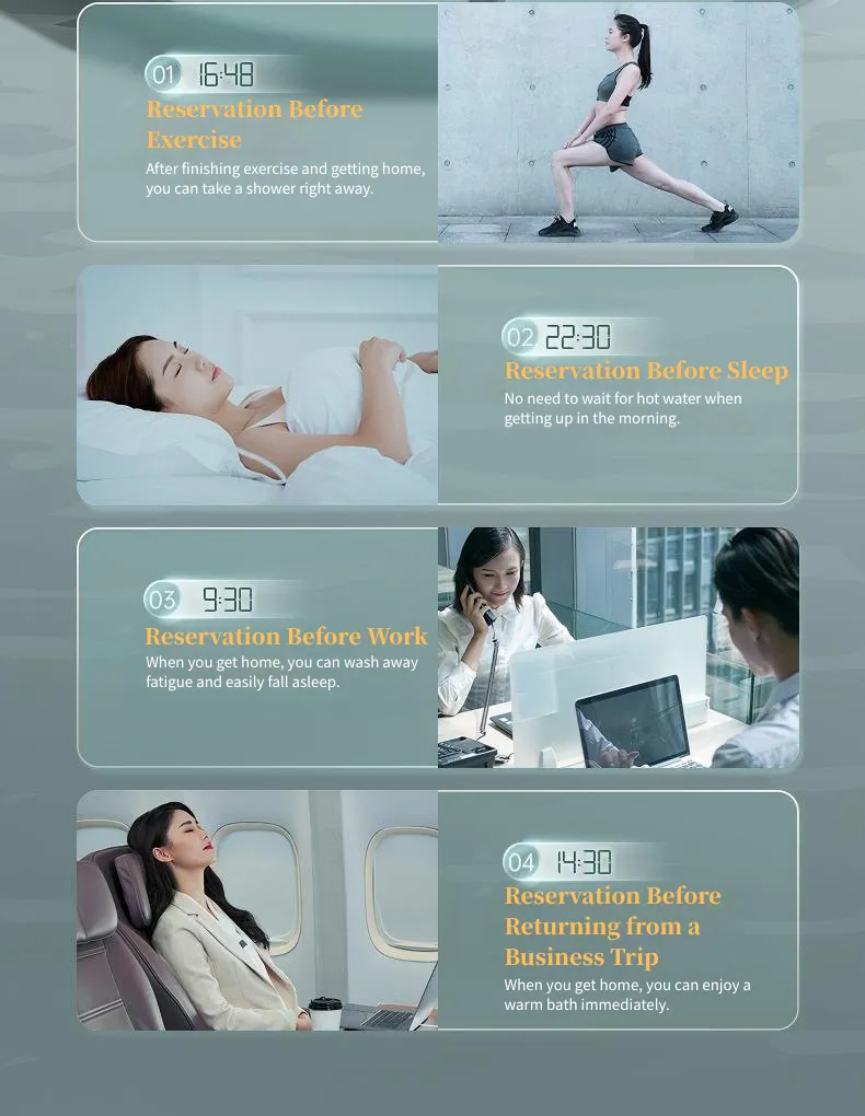 Ative o modo de economia de energia inteligente e a temperatura da água será mantida a cerca de 45 ° C ao longo do dia.