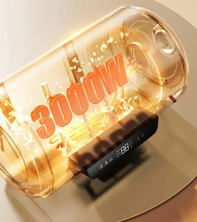 Para uma vida rápida, escolha a opção de aquecimento rápido de 3000W. Menos esperando, mais cuidado.