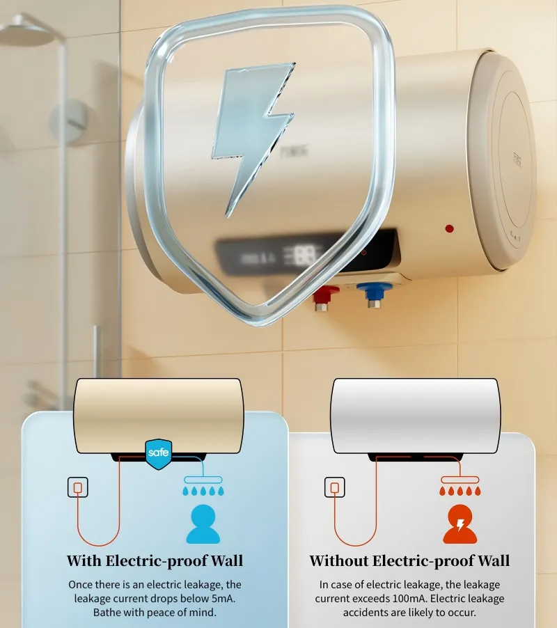 O aquecedor de água elétrico SY1 possui tecnologia 2.0 sem choque (proteção contra vazamentos + desligamento quando estiver em uso), aquecimento rápido de 3000W, 8 proteções de segurança e 6 camadas de purificação. Economia de energia, antibacteriana (99,99%) e pré-aquecimento inteligente. Design elegante com durabilidade de 8 anos. Banho seguro, eficiente e sem preocupações!