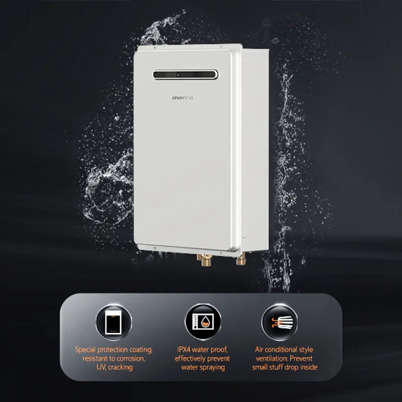 Aquecedor de água a gás externo da série S2, com provedores de água IPX4 e ventilador de motor de inversor, tendo um forte rolamento para o ambiente ao ar livre, adotando um sistema de controle digital inteligente com tecnologia de inversor avançada, realize a auto-adaptação inteligente para estabilizar a temperatura, trazer a melhor experiência de água quente.