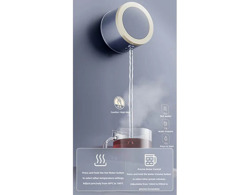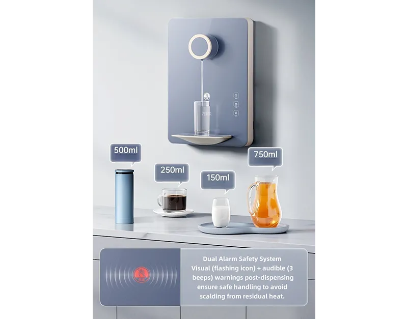 Este dispensador de água premium apresenta um design elegante de vidro temperado com controle de toque responsivo para operação sem esforço. O sistema de aquecimento instantâneo de 2200W fornece água quente em apenas 3 segundos com ajuste de temperatura de escapado de 40 ° C a 100 ° C, permitindo que você personalize sua temperatura perfeita de bebida. Os principais recursos incluem:
