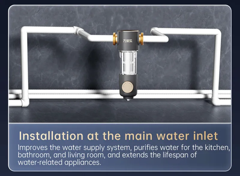 Pode ser instalado na linha de água principal, a filtragem da casa de cheiro ou de forma independente na frontidade dos aparelhos que usam água, purificação forttarted.