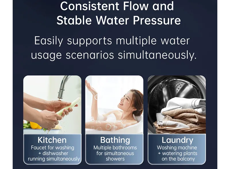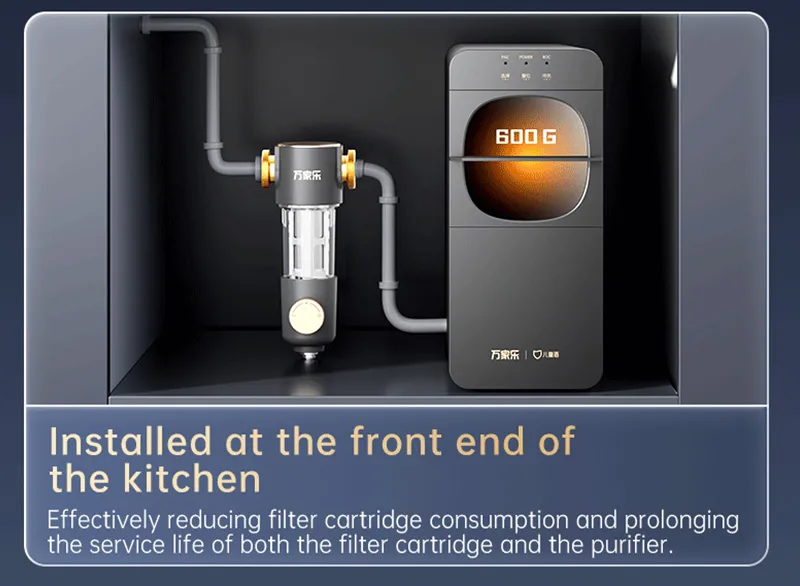 Melhora o sistema de abastecimento de água, purifica a água para a cozinha, banheiro e sala de estar e estende a vida útil de aparelhos relacionados à água.