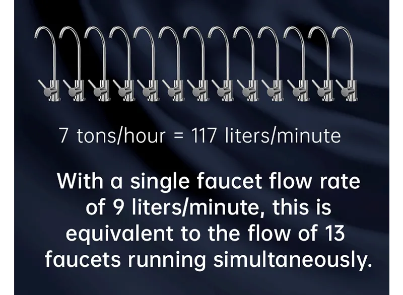 Com uma única taxa de fluxo de torneira de 9 litros/minuto, isso é equivalente ao fluxo de 13 torneiras em execução simultaneamente