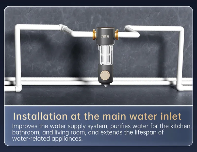 Pode ser instalado na linha de água principal, a filtragem da casa de cheiro ou de forma independente na extremidade frontal dos aparelhos que usam água, purificação fortharged.
