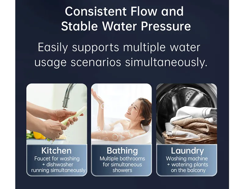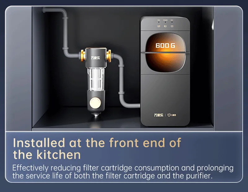 Melhora o sistema de abastecimento de água, purifica a água para o banheiro da cozinha e a sala de estar e estende a vida útil dos aparelhos relacionados à água.