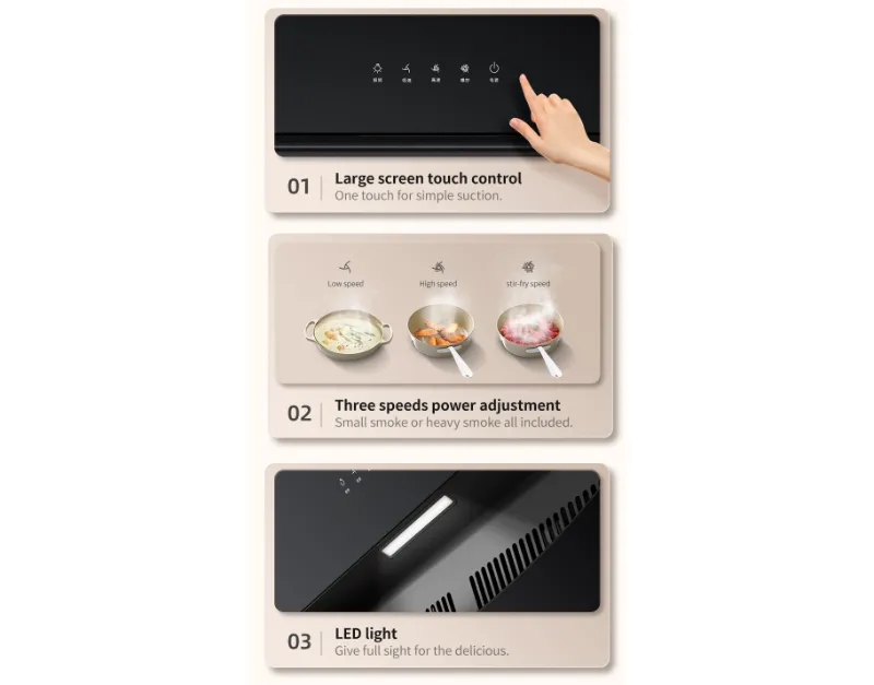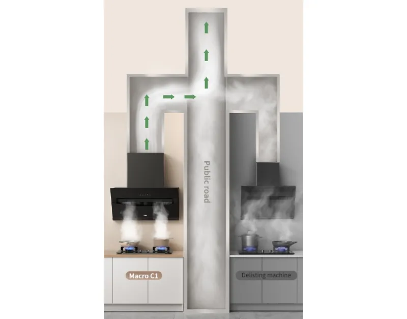 Canal de sucção de fumaça independente esquerdo e direita, tornando a sucção mais completa.
