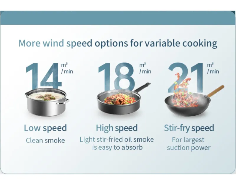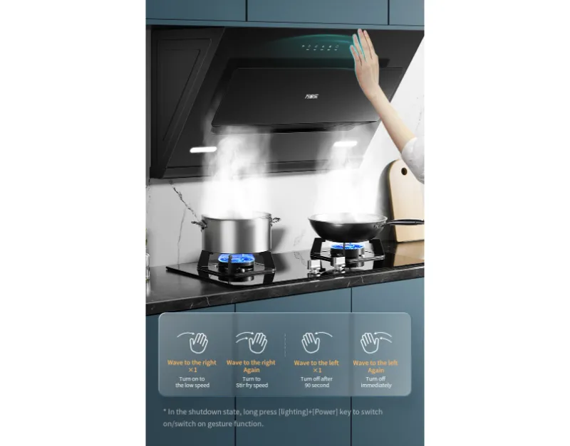 Um chave de frite de chave, o volume de ar da máquina de fumaça é aumentado instantaneamente, fácil de sugar a fumaça de óleo.