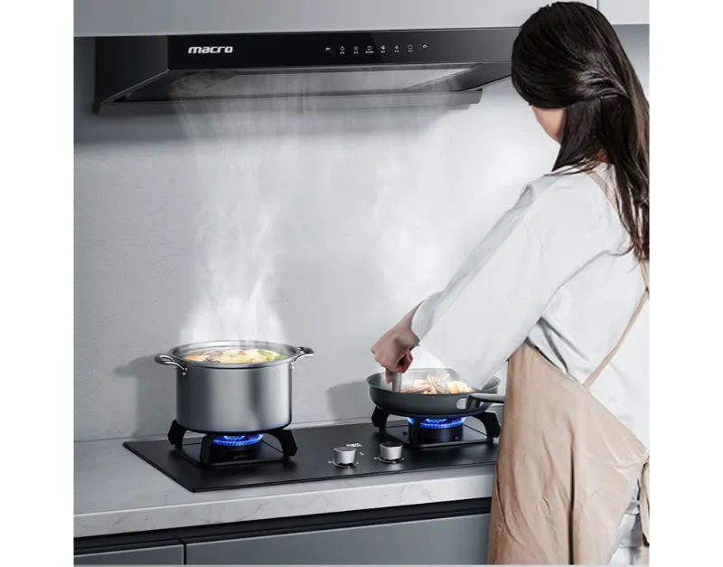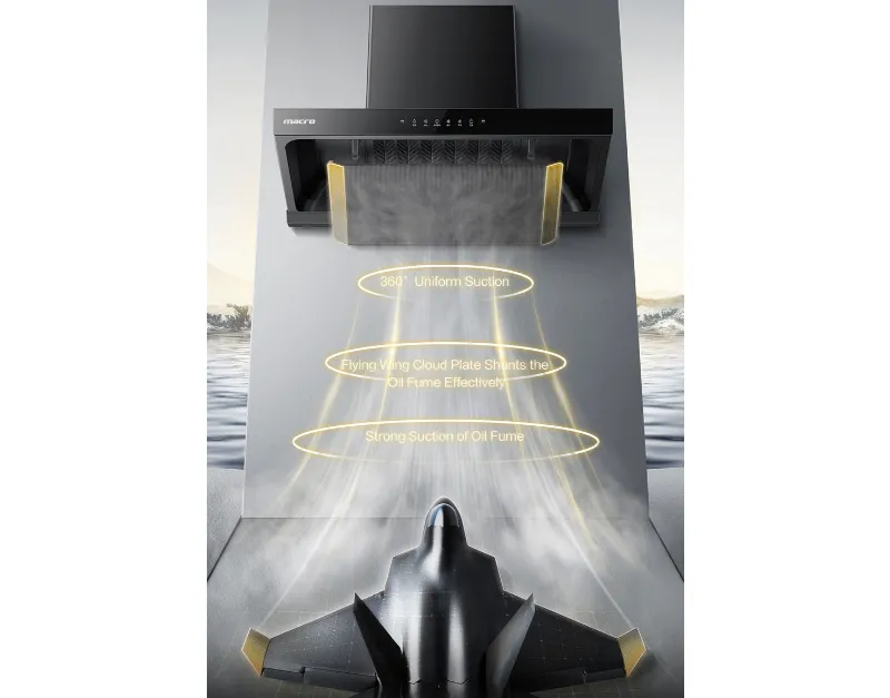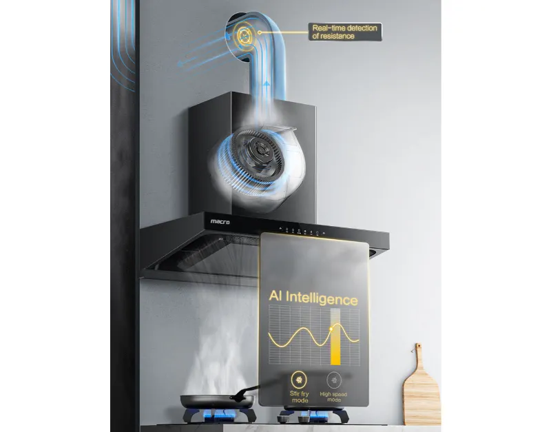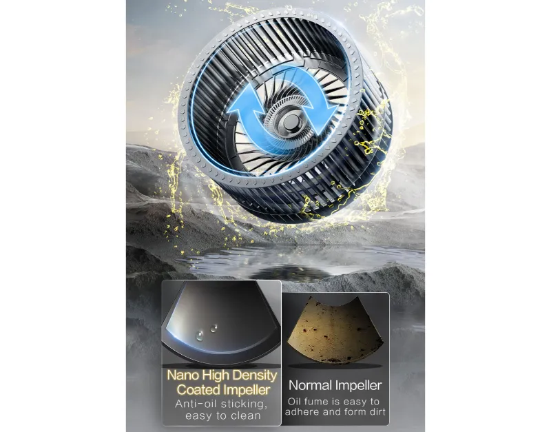 Volume de ar forte absorve rapidamente fumaça de óleo, mantendo o ar da cozinha fresco após cozinhar