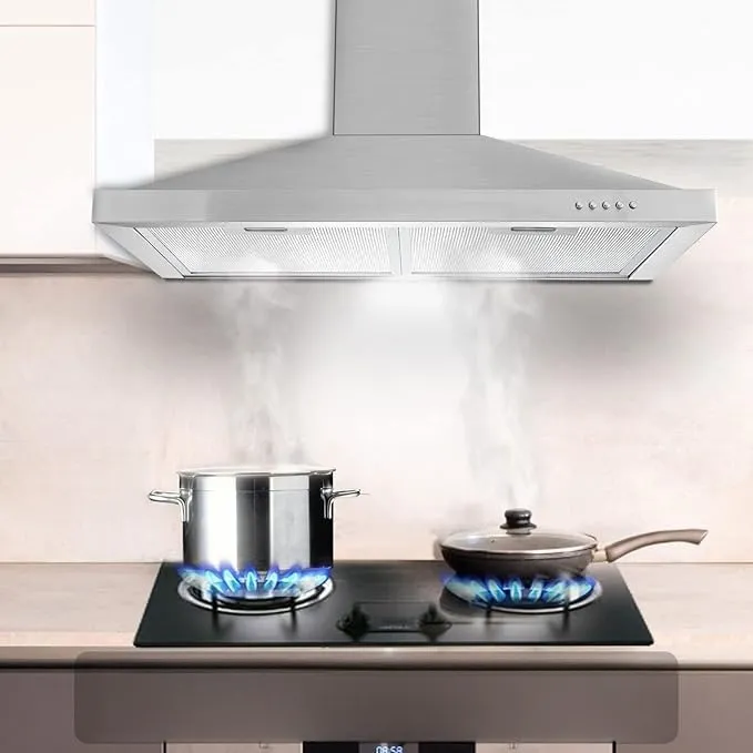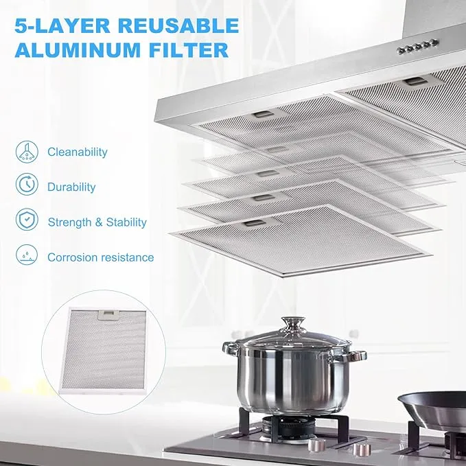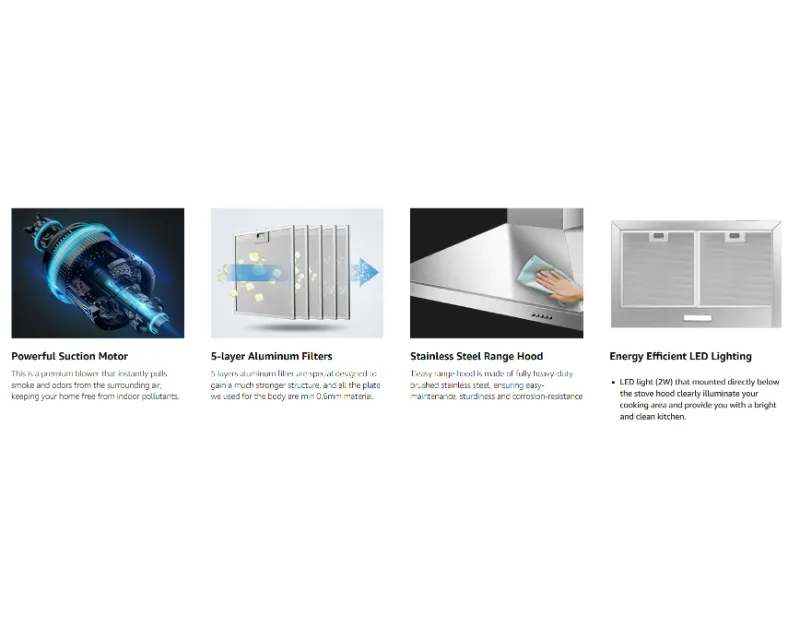 A Range Hood de Tieasy é feita de aço inoxidável escovado totalmente pesado, garantindo a manutenção fácil, robusta e resistência à corrosão