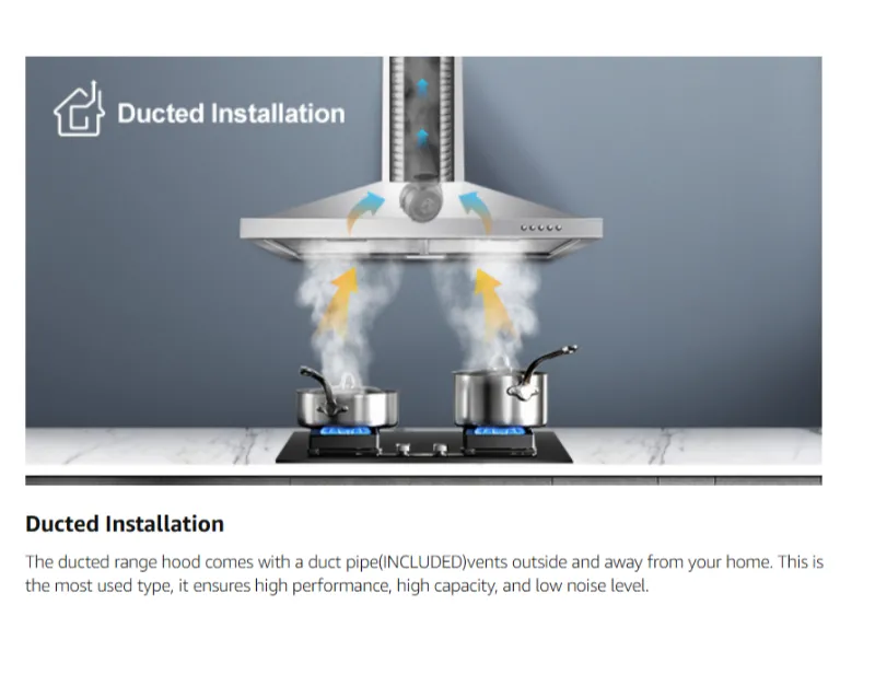 O capô de alcance duto vem com um tubo de duto (incluído) aberturas fora e longe de sua casa. Esse é o tipo mais usado, garante alto desempenho, alta capacidade e baixo nível de ruído.